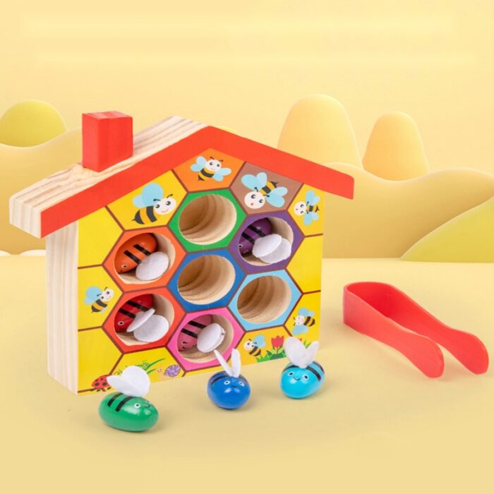 Estimula a coordenação motora fina com o uso das pinças para pegar as abelhinhas.